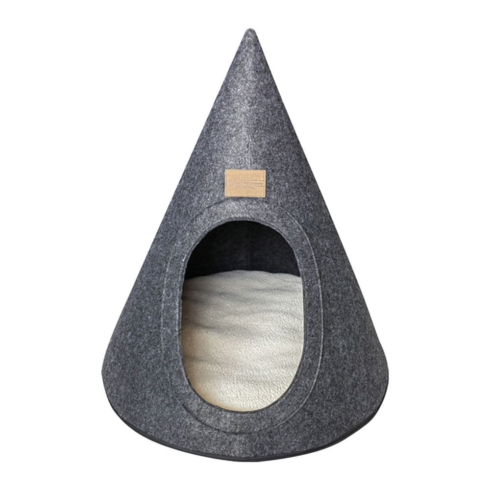 A fun little hide away for your favorite feline! A TiPi styled design is constructed from felt. It features an easily accessible doorway with faux cushion for the best in creature comforts. While the TiPi body is spot clean only, the inner cushion can be machine washed and hung to dry. There is a zipper that runs down the back and around the piece so that it can be stored flat.
