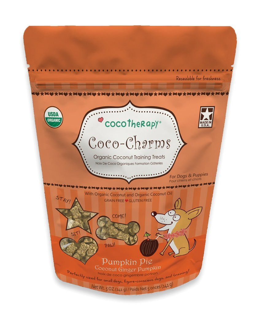 CocoTherapy Coco-Charms are vegan, grain and gluten free, dairy free, no eggs, and made with no preservatives, colors, or artificial flavors. This means dogs with allergies and sensitive tummies can enjoy them and benefit from them as well!