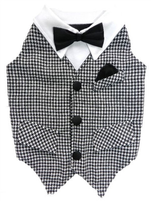 Dress up your pup with this draper dog tuxedo vest.