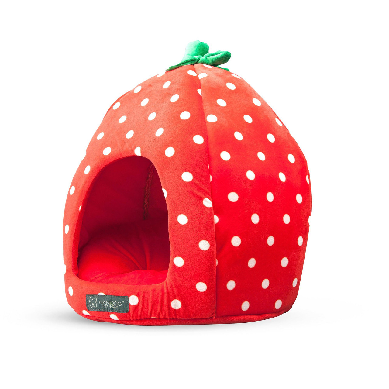 Add some farm-fresh sweetness to your precious pet’s life with the Nandog Strawberry Dog & Cat Bed House. This fun and festive cuddler cave features a bright, red exterior that’s decorated to look like a cute, plump strawberry. Lined with a soft, plush cushion, it’s the perfect hideaway for a midday snooze or a sound night’s sleep. Designed with both comfort and convenience in mind, the non-toxic polyester base features a removable cushion that can be hand-washed as needed to keep her bed looking and smelling fresh and clean. This cute fruit bed is great for small dogs, cats, and other animals! With its removable cushion and iconic strawberry design, this cozy bed will add sweetness to any pet's life.