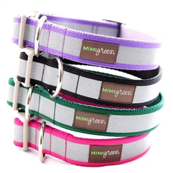 The Reflective Dog Collars and Leashes are made specially to see your do at night. They are made of a highly reflective 3M tape that is placed on colorful ribbon to make it easier to see your dog in the dark.